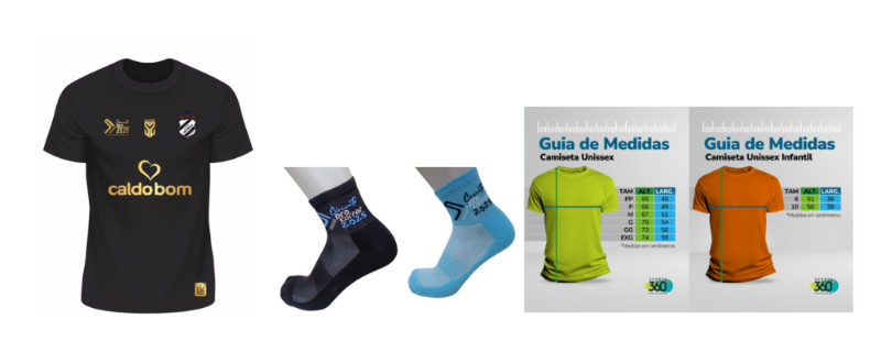 A camiseta e a meia são itens opcionais e são vendidas separadamente.