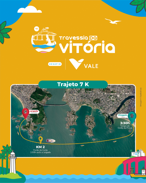 Neste ano de 2026, nosso evento ganha a chancela TRAVESSIA DA VITÓRIA - DESAFIO VALE. Uma prova de natação em águas abertas que vai para a 11ª edição e tem caráter competitivo e sócio ambiental.